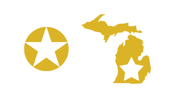 Michigan silhouette with star design: Standard REAL ID-compliant licenses and IDs will display a star in a silhouette of Michigan in the upper right corner.